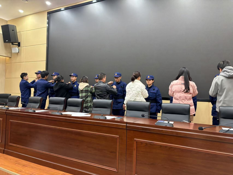 在热烈的掌声中,出席仪式的领导和老师们逐一为新生佩戴消防救援衔领章。这一刻,不仅是对他们过去努力的肯定,更是对他们未来责任的期许。应急救援专业全体新生将以此为新的起点,更加努力地学习训练,为专业的发展作出更大的贡献。新生们接过老师们授予的胸标、领标,这不仅标志着他们获得了认可,同时也被赋予了更多的责任。