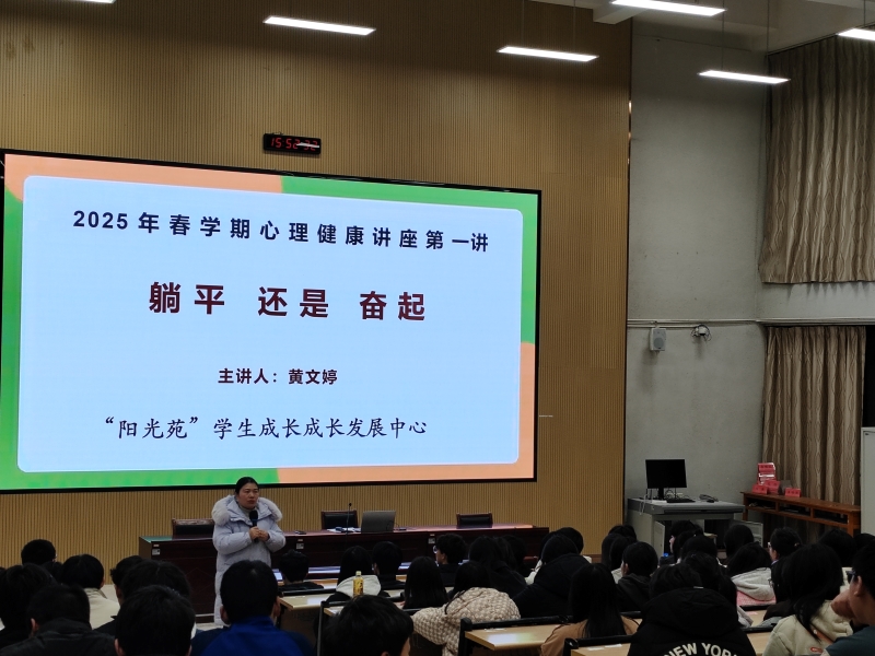 随着新学期的到来,2月27日,管理系组织2024级全体新生聆听新学期心理健康讲座。本次讲座以“躺平还是奋起”为主题,旨在帮助同学们更好地适应新学期的学习与生活,提升他们的心理健康素养,培养积极向上的心态。