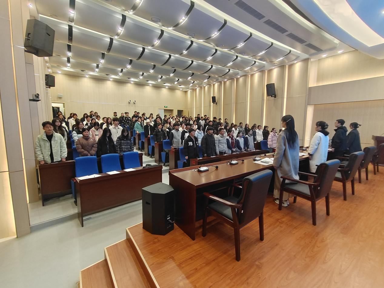 3月13日下午三点半,我校青年团校2025年春学期培训班开班典礼在知行厅举行,管理系全体入团积极分子作为团校学员参加了此次活动。本次仪式在雄壮激昂的国歌声中拉开帷幕,全体与会人员起立,齐声高唱国歌。随后徐莹书记为学员介绍了本次青年团校培训班的重要意义和目标,王文灿书记宣读了青年团校的班委职责,樊琦书记宣读了团校学员考核方案和班委竞选方案。