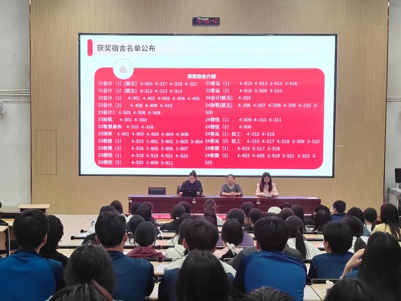 获奖宿舍代表李欣分享建设心得:“宿舍是我们在校的‘家’,我们通过制定值日表、定期主题装饰、组建学习小组等方式,让宿舍成为共同成长的港湾。”其发言生动展现了优秀宿舍的凝聚力与创造力。