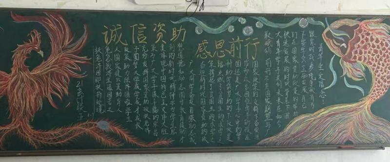 同步开展的黑板报评比活动得到各班积极响应。学生们围绕“诚信立身”、“感恩资助”等主题,精心设计版面,用粉笔画展现诚信内涵。