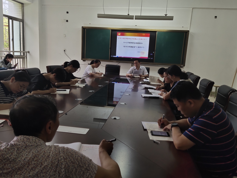 6月22下午第二节课之后,周大锋主任带领全系教职工认真学习了《中小学教师职业道德规范》、《泰兴市师德师风建设“十条禁令”》。