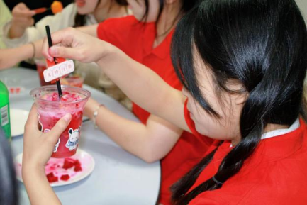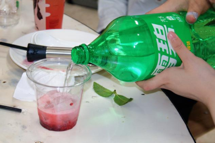 更有同学在老师的帮助下发现了新的果茶配方并完成了自己的作品,看着一杯杯精美的成品,大家都体会到了成功的喜悦。