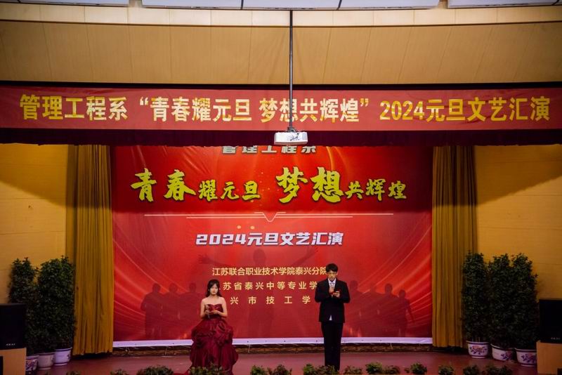 2023年12月29日下午,江苏省泰兴中等专业学校管理工程系在报告厅举办“青春耀元旦 梦想共辉煌”的元旦文艺汇演。学校副校长苏辉、团委书记杨巧珍、学生管理服务中心主任施文龙以及其他科室系部的领导们出席了本次活动。