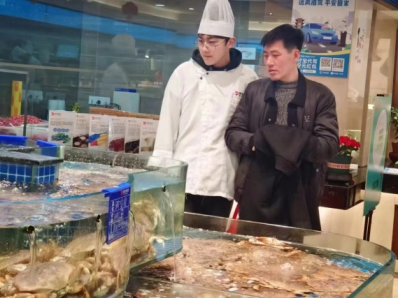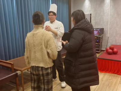 在浙江余姚德悦盛宴大酒店,酒店领导李宁、后厨总厨师长周洪波和人事部经理陈引男对走访团队表示热烈欢迎,并高度赞扬了实习生们扎实的专业知识和积极主动的工作态度。实习生们看到家人后激动不已,迫不及待地与家人、老师们分享实习期间的收获,爱与快乐洋溢在每个人的脸上。随后,走访团队来到海鲜池参观,学生们对海鲜一一介绍,看到孩子们努力和专业的样子,老师和家长们纷纷表示欣慰和感谢。