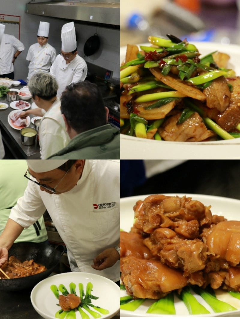 面对国际名厨的技艺展示,中餐烹饪专业老师带领23级中餐烹饪班学生以“中式风味”热情回应。师生团队现场制作了回锅肉、红烧鸡、红烧猪手、双椒兔肉四道经典菜肴,学生们分组展示刀工处理与复合调味技巧。红烧菜系的“浓油赤酱”与西班牙海鲜饭的“原汁原味”形成鲜明对比,引发双方对烹饪哲学的热烈讨论。