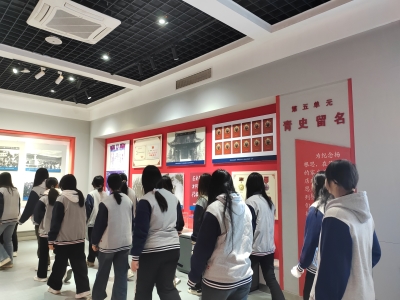 祭扫活动后,师生们有序参观杨根思烈士纪念馆。凝视着泛黄的家书、破损的军装,我们仿佛能穿越时空与英雄对话。陵园讲解员现场讲述杨根思烈士在抗美援朝长津湖战役中,抱着炸药包与敌人同归于壮烈事迹,现场师生为之动容。随后,在引导人员的组织下,同学们缓步上前,将寄托哀思的小白花轻轻摆放在纪念碑基座。