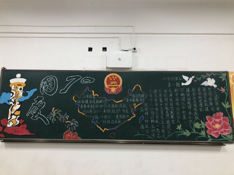 为加强校园文化建设,管理工程系于2019年10月9日开展了本学期第一次黑板报评比活动。 本次黑板报围绕“中华人民共和国成立70周年”为主题,各班在班主任的带领下积极准备、认真设计,按时完成黑板报。大部分班级所展示的板报内容紧贴主题、创意新颖、版面布局合理。本次评比活动,让学生很好地受到一次爱国主义和集体主义教育,唱响了爱党爱国爱社会的时代主旋律,引导学生不断增强民族自尊心、自信心和自豪感,积极爱国、理性爱国,为实现中华民族伟大复兴的中国梦而努力学习、不断进取!