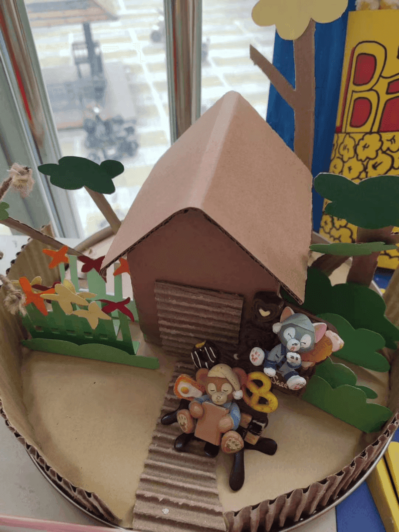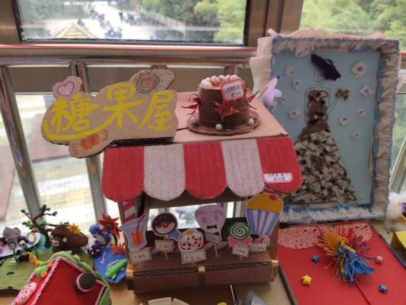 这项别具特色的主题活动的开展,成为了我系学生展示自己的舞台,在作品展示环节中,为大家展示了精美又“真实”的手工作品。这些手工艺术品的原料都选自生活中常见的材料,如:矿泉水瓶、路边的树枝、废纸盒等。利用自己的巧手与智慧将这些废料做成精巧的工艺品,展示中有废纸做的相机,瓶做的灭火器,还有用废纸箱做的房屋等等。这些构思巧妙却贴近生活。
