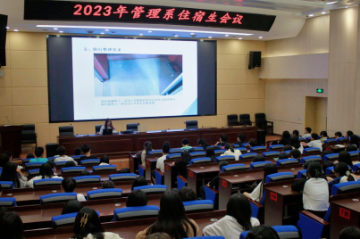 新学期,为加强住校生管理,规范住校生行为,增强学生健康意识、纪律意识、安全意识,为住校同学营造一个整洁、温馨、舒适、平安的住宿环境,2023年9月18日晚,管理工程系全体住宿生舍长在“知行厅”召开“2023管理系住宿生会议”。