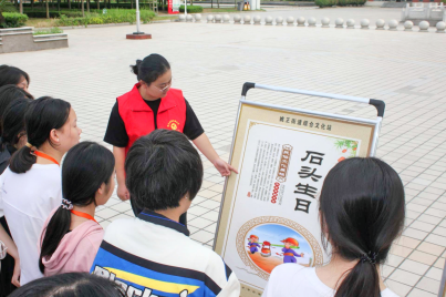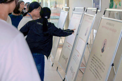 以“中国传统节日由来”、“唐宋八大家介绍”等为主要展览对象,姚王街道综合文化站的志愿者对每一幅展品作出详细介绍,不少同学拥有一定对传统文化的知识储备,自豪地和大家分享、讨论起自己的所知所闻。