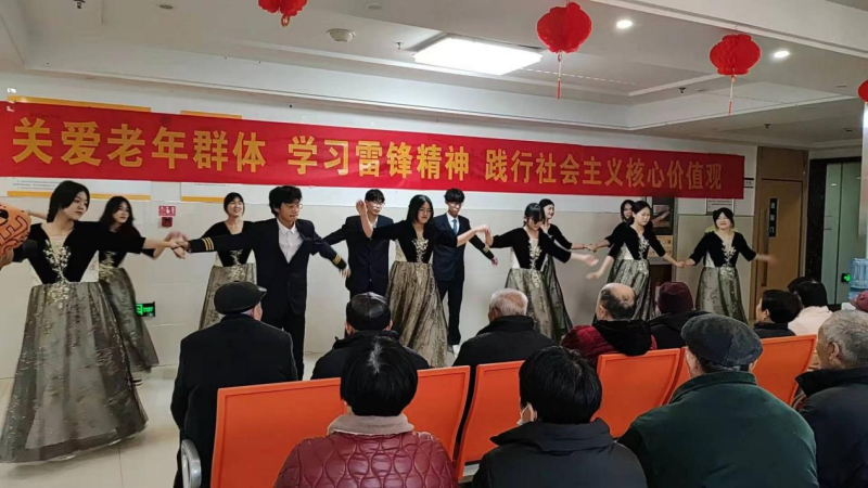 2024年3月5日下午,为践行雷锋精神,弘扬尊老、敬老、助老、爱老的中华传统美德,在校团委的带领下,我校“青春红丝带”志愿服务队的30余名学生们前往泰兴大庆护理院开展公益演出活动。大庆护理院的院长、副院长代表全院老人对我校师生的到来表示了热烈的欢迎。学雷锋,青年学子展新风”活动。