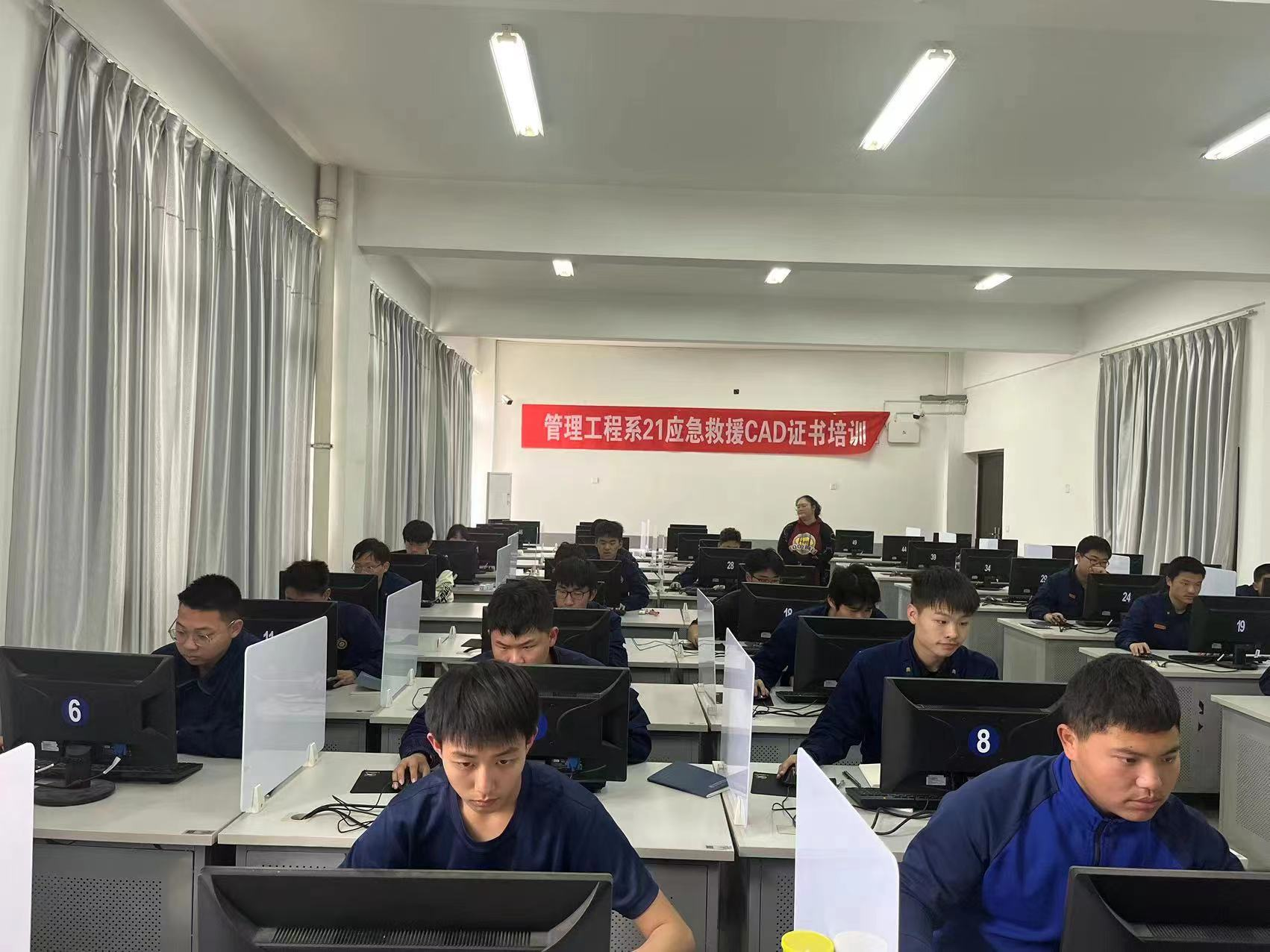 为加强专业理论知识学习,促进学生扎实掌握CAD理论知识要点,积极备战CAD证书考取。4月24日--4月25日管理工程系21应急救援班全体同学,于4号实训楼304教室组织开展了“CAD证书培训考取”。首先徐老师按照考纲分析了难背题型和易错题目,并用画图解析的方法为同学们讲解了考前注意事项。
