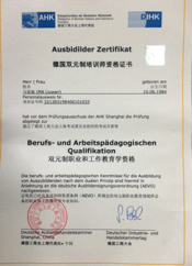 2016年6月19日至9月19日,机电工程系李山兵、马留婉两位老师在泰州机电高等职业学校参加了江苏凤凰出版传媒集团有限公司职业教育出版中心与德国DIHK公司联合组织的“德国双元制师资”培训,并取得了“德国双元制培训师资格证书”。