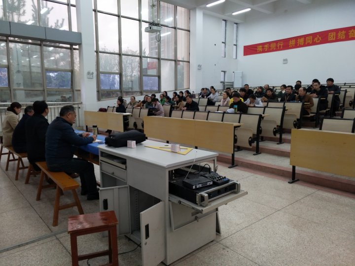 11月21日下午两节课后,我系在1号教学楼阶梯教室召开了系部教职工会议,陈爱午主任主持会议,系部全体教职工参会。 会上陈主任就最近的系部工作做了具体部署,要求每一位教师严格遵守工作纪律,认真上好每一次课,立德树人。班主任要每天到班,及时掌握班级动态,抓好环境卫生,时时不忘安全教育。