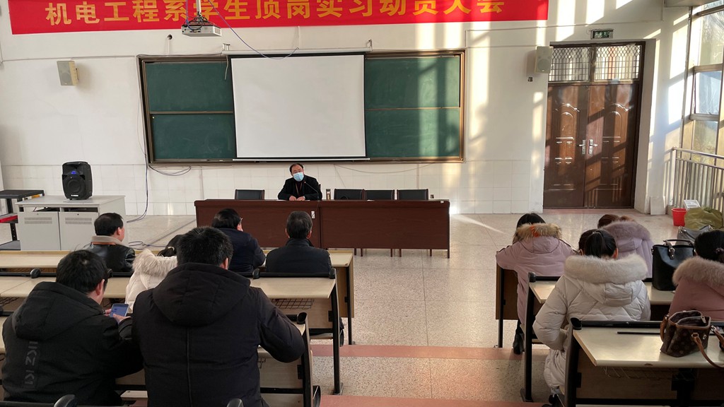 2021年1月12日下午两节课后,机电工程系在1号教学楼阶梯教室召开全系教职工大会,陈爱午主任主持会议。