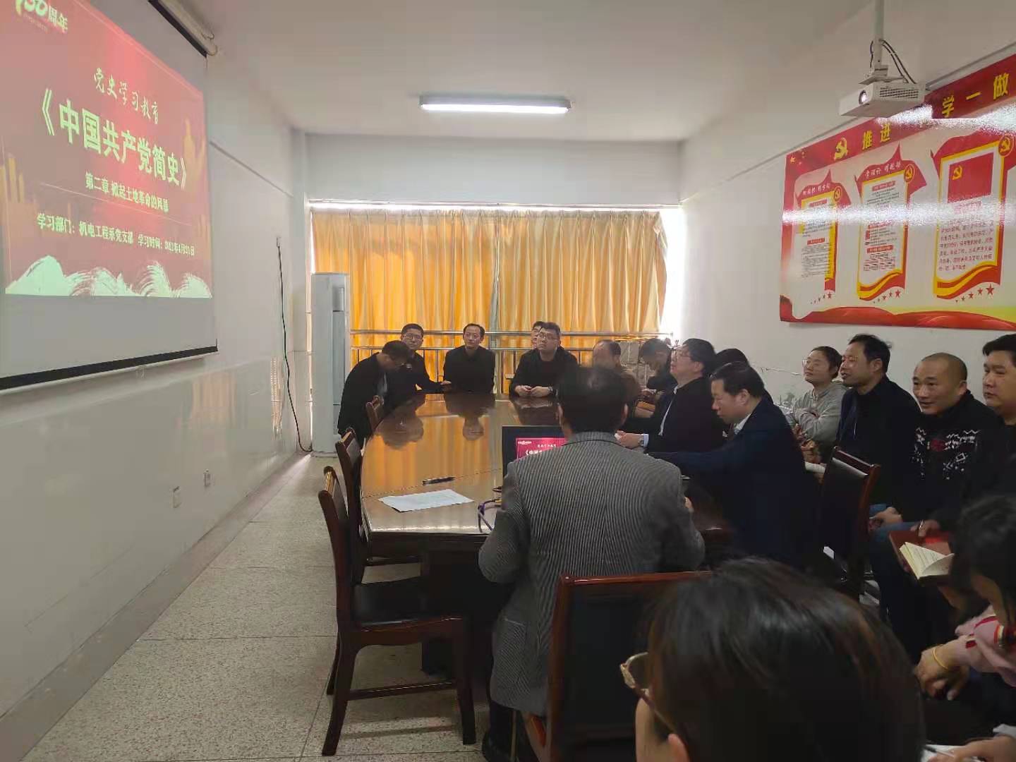 4月21日下午,机电工程系党支部在1号教学楼308会议室开展了第二次党史集中学习,支部书记陈爱午主持会议。