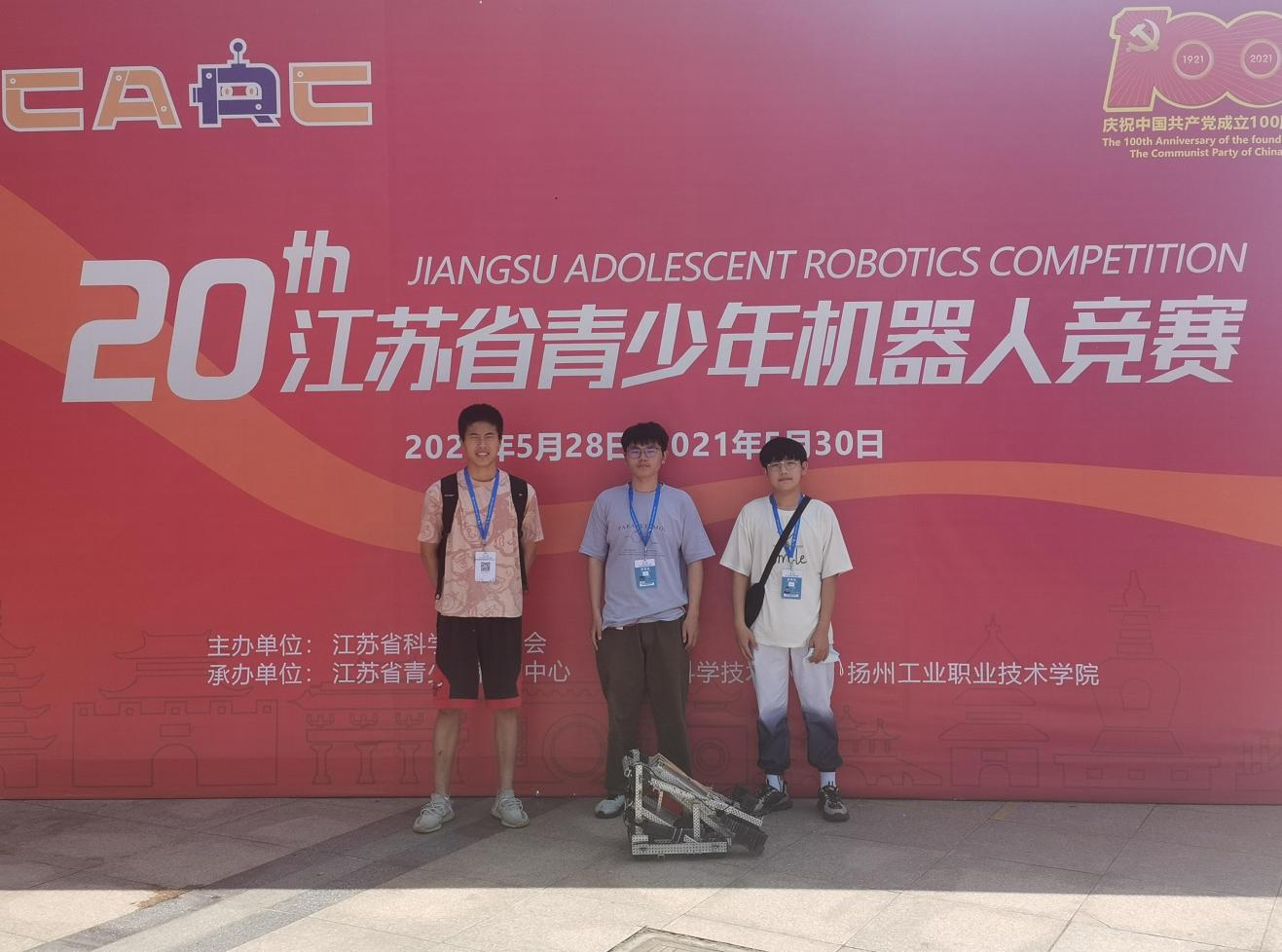 江苏省青少年机器人竞赛是全省中小学各类机器人竞赛活动中规模最大、层次最高、影响最广的活动之一。机器人比赛综合考察参赛学生多方面的能力,既包含计算机编程、程序语言设计的内容,也包含动手制作的机械制造等工程学、物理学方面的知识,同时要求学生有临场的决策、应变、协作的能力,是多维度检验学生科技创新思维、动手实践能力的赛事活动。我校将继续努力,争创辉煌。
