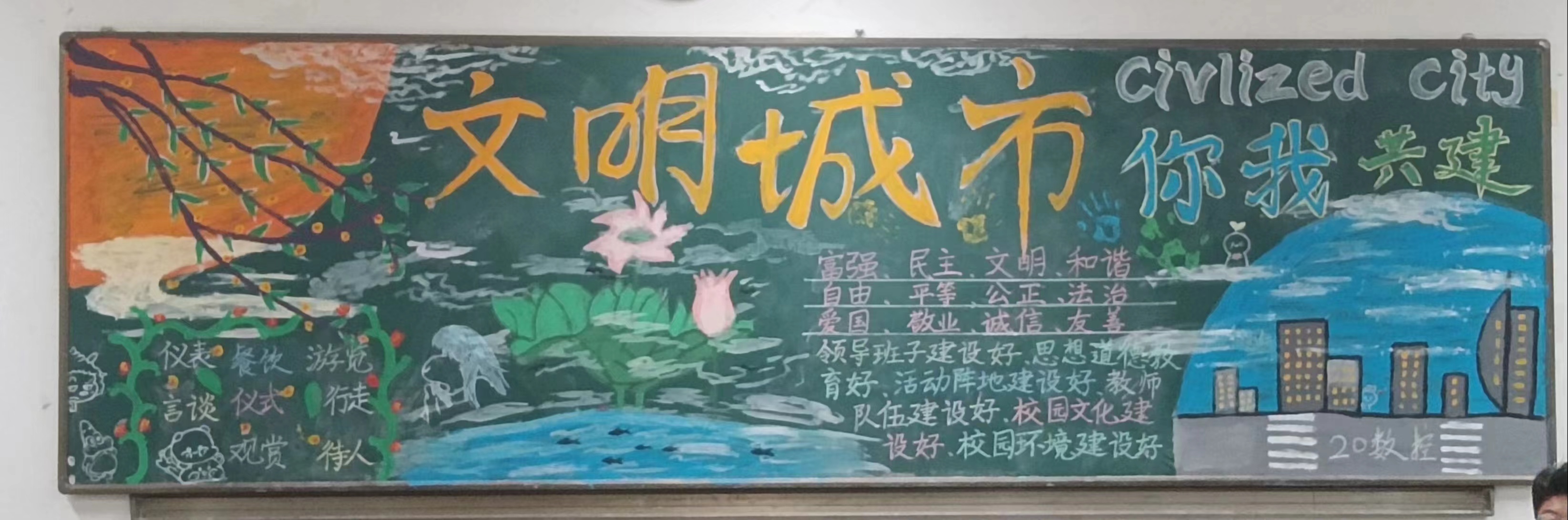 为进一步加强社会主义核心价值观教育,营造城市团结和谐、文明的氛围,我系开展了“文明城市建设”主题黑板报评比活动,现将评比结果通知如下: