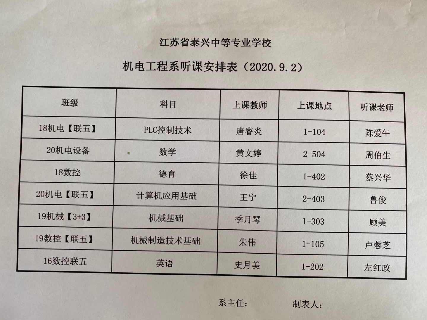 9月2日,开学第一节课,机电工程系组织系部主任和教研室主任随机听了7位老师的课,课后进行了反馈,汇总反馈的信息,发现老师们课前进行了充分备课,大部分老师采用了多媒体辅助教学;老师上课精神饱满、声音洪亮、语言清晰、板书认真;学生专心听讲、认真笔记、踊跃发言,开学伊始呈现出一片新的气象。