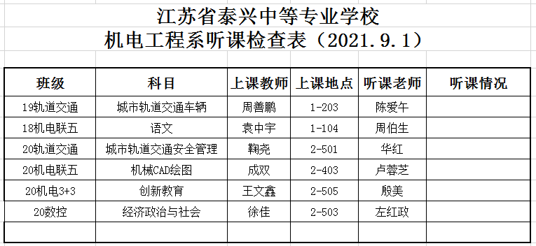 9月1日,在有序做好疫情防控的前提下,我们迎来了2021年秋学期开学的第一天。上午第一节课,机电工程系组织系部有关管理人员深入课堂进行了随堂听课,检查了学生的到班情况、老师的备课上课情况。汇总反馈的信息,发现老师们课前进行了充分备课,大部分老师采用多媒体辅助教学,老师上课精神饱满、声音洪亮、语言清晰、板书认真;学生专心听讲、认真笔记、踊跃发言,开学伊始教学活动井然有序。