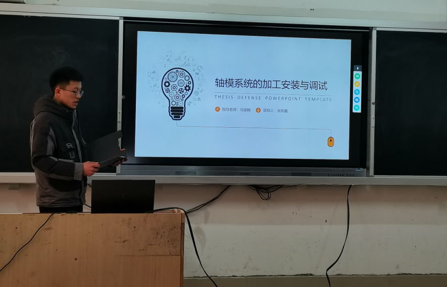 2021年12月27日,机电工程系17级机电一体化技术专业的学生在1号教学楼的四个教室分四个小组进行了毕业答辩。各答辩小组老师根据学生提交的毕业设计材料提出四到五个问题让学生进行回答,学生结合自己的毕业设计实际进行了答辩并展示了个人的毕业设计作品。由于这次毕业设计的素材来源于他们刚刚结束的AHK终期考项目,答辩时,学生作品介绍全面、流畅,问题回答具体详细,通过参与这一项目的学习、考试,坚持做中学学中做的教学模式,学生的综合素质得到了很大提升,答辩取得了圆满成功。
