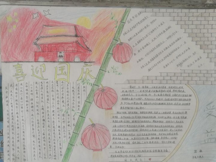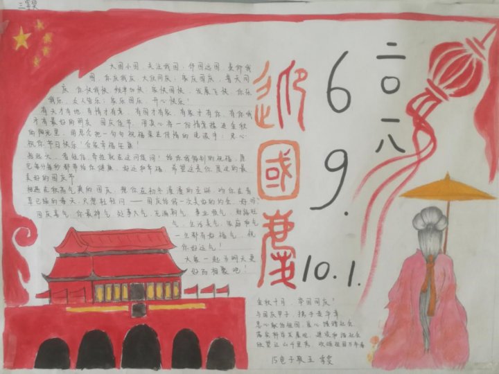 各班级、各班主任: 为迎接国庆的到来,营造节日的气氛,我系组织开展了“迎国庆”为主题的手抄报比赛。各班积极参与,涌现出了一批好的作品,现将评比结果公布如下: 一等奖:17机电3+3 周 杰