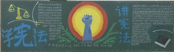 各班级、各班主任: 为进一步加强和提升我系学生的法制观念,我系组织了 “讲宪法 学宪法”主题黑板报检查评比。各班级为此进行了精心准备,围绕知晓法律、遵守法律、敬畏法律等内容精心设计,通过精美的绘画和详实的文字说明,体现了中学生对宪法法律的认识和感受,在加强法制观念的同时,涌现出许多创意独特的板报,现将评比结果公布如下:
