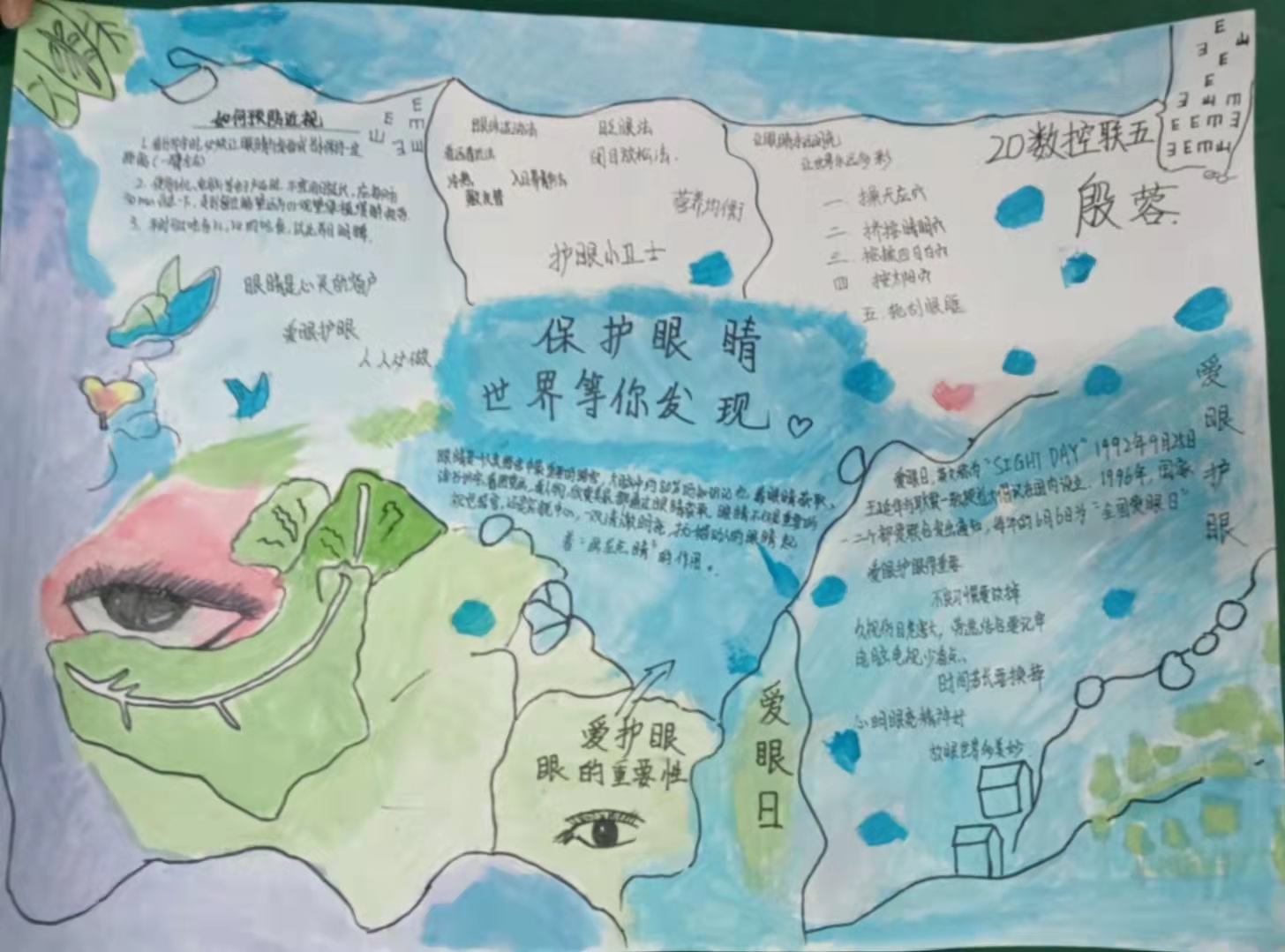 活动以“”爱眼护眼”为主题,内容包括眼睛构造、眼睛的重要性、正确用眼、认真做眼保健操等等。全系41个班级踊跃参加了此次活动,同学们广泛搜集资料,精心设计,创造出一幅幅内容丰富且形式多样的手抄报。通过评选现将优秀作品予以公布:20机器人、20数控联五、21电子联五。