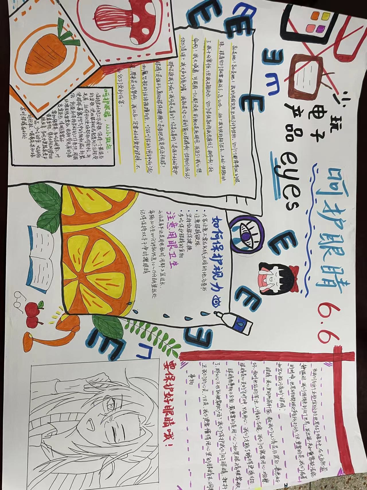 连日来,我系通过召开主题班会、办手抄报、做好眼保健操,观看网络视频等方式,向学生强调视力保健的重要性;倡导学生上课学习时从端正坐姿、科学合理用眼做起,养成良好的护眼习惯;同时要求学生在日常生活中从限制玩手机,少长时间看电视、有度上网,多参加户外运动做起,呵护好眼睛这扇心灵的窗户。
