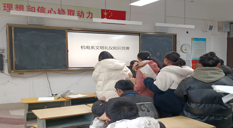 根据学校工作布置,为使学生行为养成教育活动月落实到实处,机电工程系接合本系实际,于2023年2月23日举行了文明礼仪知识竞赛活动,活动前,系部广泛宣传,以活动促学生行为养成,各班精心准备,在广泛背诵礼仪知识的基础上选拔优秀选手参加系部知识竞赛,经过紧张的面试评比,最终选出优胜学员15名代表系部参加全校比赛。