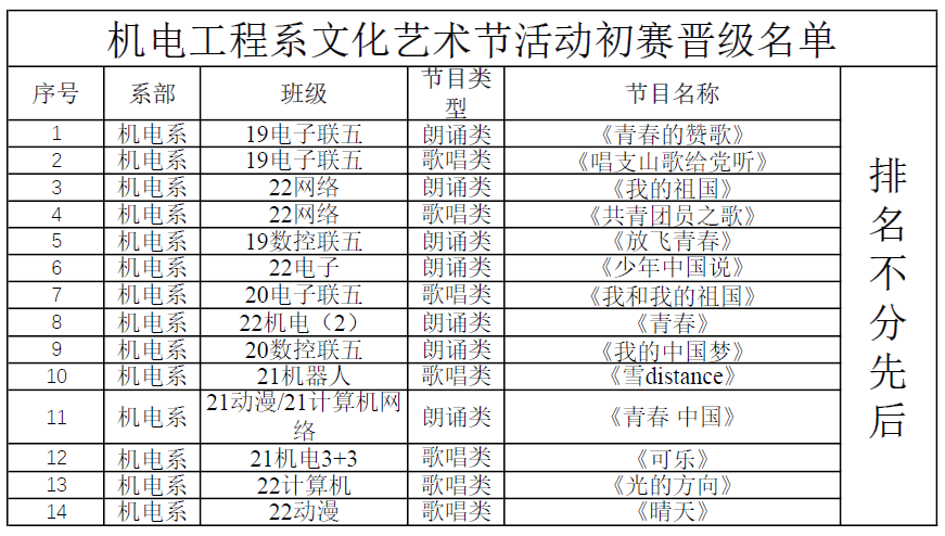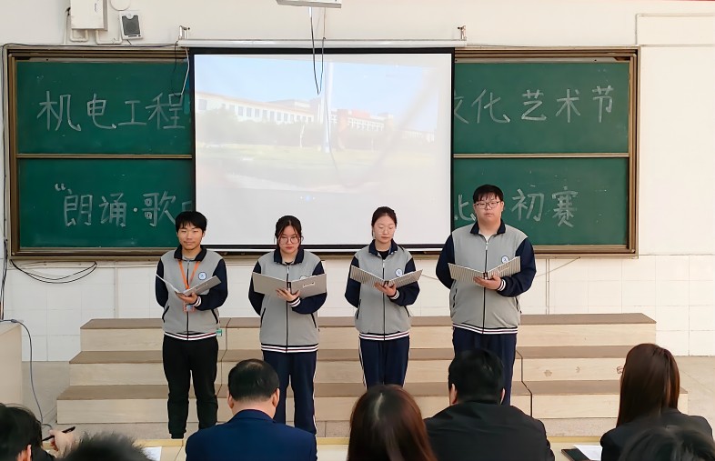 4月27日上午,机电工程系在1号楼阶梯教室举办了文化艺术节“朗诵•歌唱”大赛初赛。系部学工主任蔡兴华老师,学生科科长肖斌老师,团总支书记沈阳老师,成双老师,史月美老师在本次初赛中担任评委。