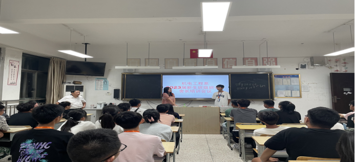 9月2日,机电工程系在2-405教室召开了新生班级班干部培训会议,系部学工主任蔡兴华老师在会上对班干部如何管理和服务好班级提出了具体的要求,重点关注好同学们的人身安全、财物安全、交通安全,随时将班级动态与班主任沟通,并鼓励大家通过服务班级,协助班主任工作来提升自己的相关能力。学生会主席叶淑宇讲解了机电工程系的相关百分赛考核制度和要求及相关注意事项。宿管部周炎部长讲解了危禁品的管理问题和宿舍物品摆放要求。