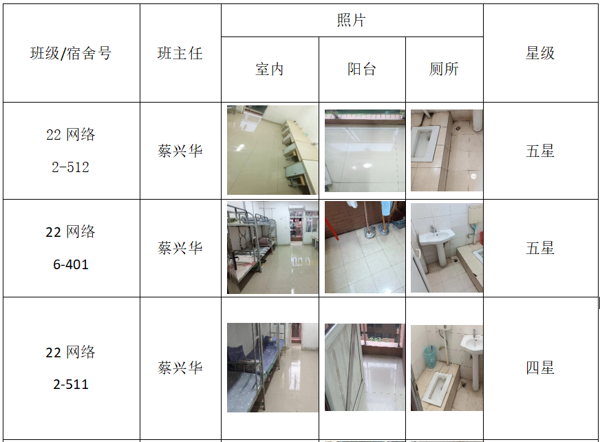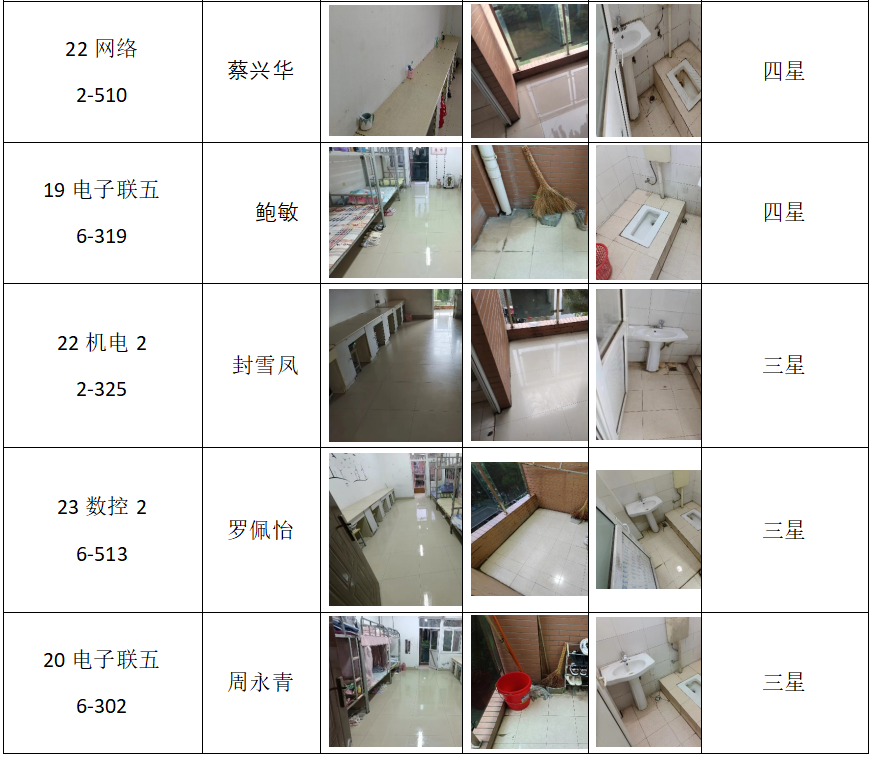 为了推动学生宿舍的文明建设,创造整洁、文明、舒适、优美、规范的生活环境,培养学生良好的学习、生活习惯,提高学生的安全防范意识,增强学生的团队精神和集体观念,促进和谐校园建设,现将评比结果通知如下: