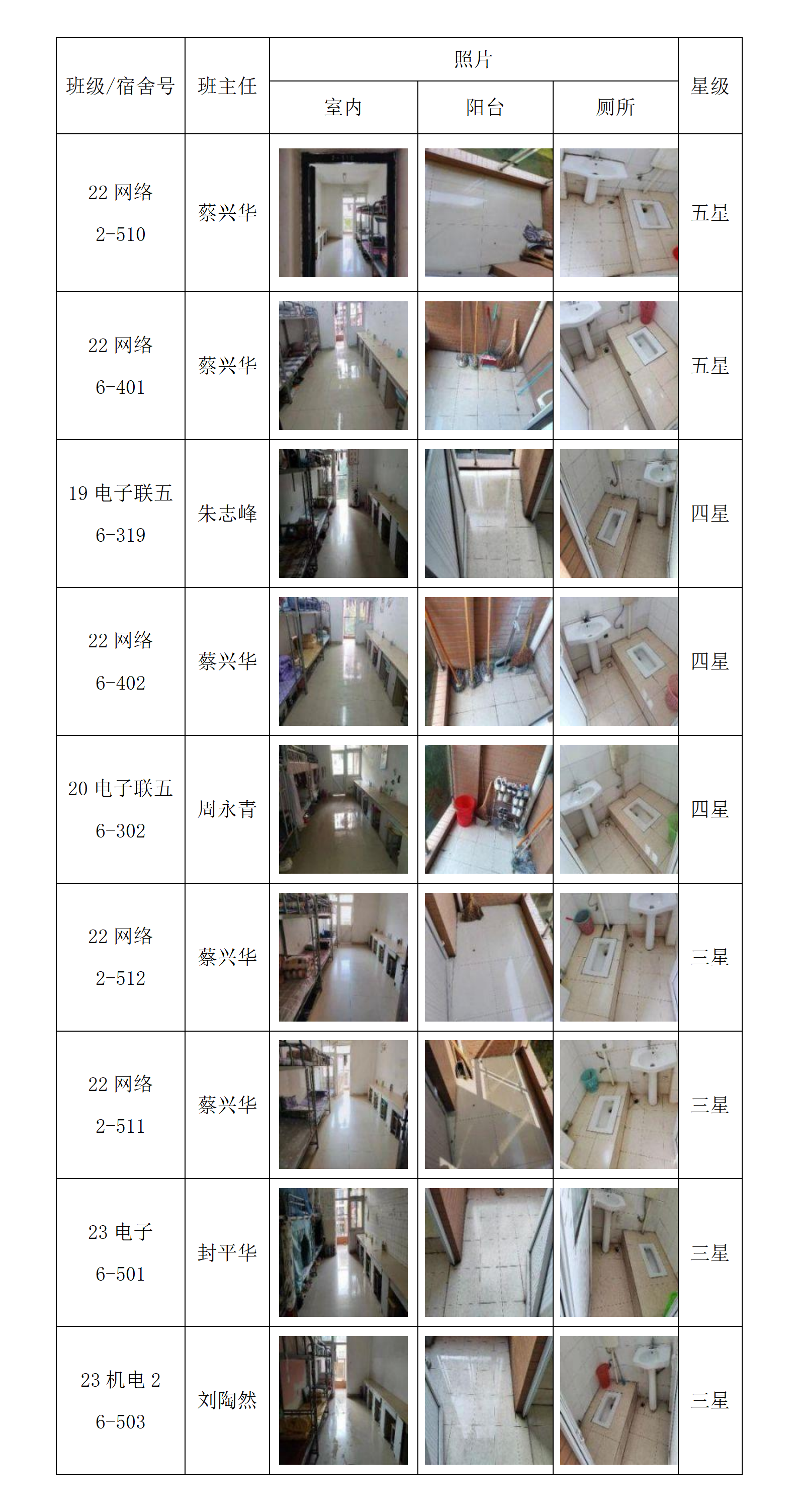 为了推动学生宿舍的文明建设,创造整洁、文明、舒适、优美、规范的生活环境,培养学生良好的学习、生活习惯,提高学生的安全防范意识,增强学生的团队精神和集体观念,促进和谐校园建设,现将评比结果通知如下:
