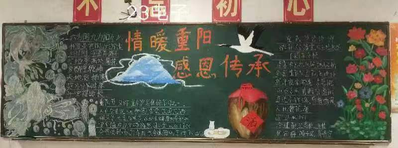 如今,重阳节已经成为了传统文化的重要组成部分。在这一天,人们不仅向老人致敬,还表达对长寿和健康的祝愿。重阳节也被定为中国的“爱老人日”,鼓励年轻人尊重、陪伴和关怀老年人。为了更好地传承敬老爱老的传统美德,我系决定开展“情暖重阳,感恩传承”主题黑板报评比活动,现将评比结果通知如下: