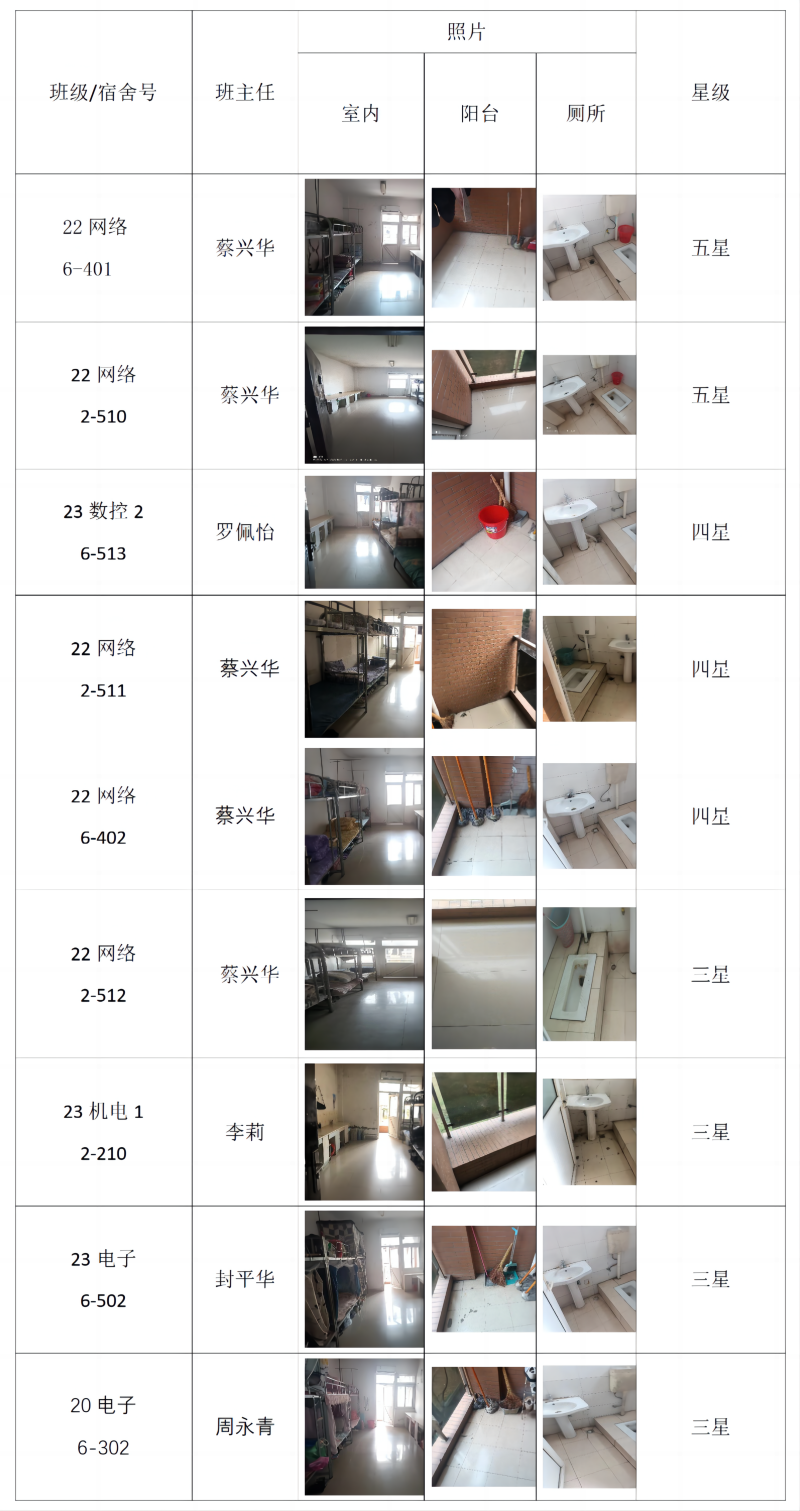 为了推动学生宿舍的文明建设,创造整洁、文明、舒适、优美、规范的生活环境,培养学生良好的学习、生活习惯,提高学生的安全防范意识,增强学生的团队精神和集体观念,促进和谐校园建设,现将评比结果通知如下: