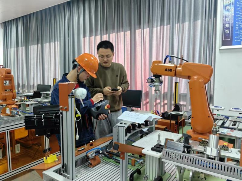 为贯彻落实《国家职业教育改革实施方案》和《关于在职业院校实施“学历证书+若干职业技能等级证书”制度试点方案》等文件要求,12月7日和12月14日,按照培训评价组织发布的考试计划,机电工程系圆满完成了2024年度“1+X”工业机器人操作与运维职业技能等级证书(初级和中级)理论和实操认证考核。22机器人25名同学参加初级认证考核,2名教师参加中级认证考核,共27人参加此次认证考核。