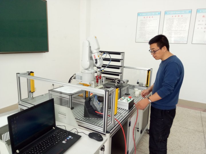 机电系在省高水平示范性实训基地建设期间,新建了机器人技术应用实训室,该室主要由南戈特NGT-RA6B型模块化工业机器人应用教学系统、Dobot Magician教育版和Magician基础版机械臂等组成,机器人本体和其他单元配合能完成搬运、码垛、3D打印、轨迹绘图、打磨抛光、激光雕刻等实训内容,同时配备机器人维修装调仿真软件。该室的建成有助于学生对机械设计、电气自动化、气动控制、自动控制、计算机技术、传感与检测技术等知识的学习,提高学生的设计、装配、调试等综合能力。