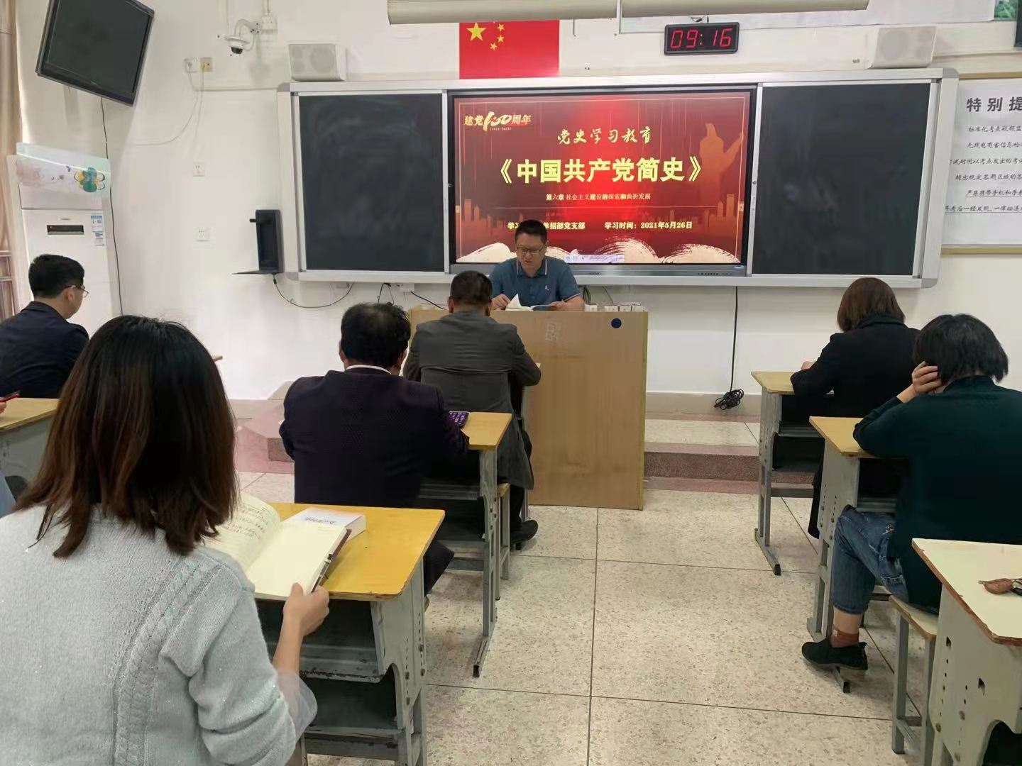 5月26日上午单招部党支部组织全体党员集中学习,集中学习《中国共产党党史》第六章。