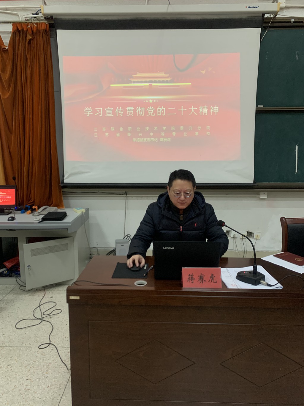 12月7日下午,单招部全体教师在支部书记蒋赛虎的带领下学习了党的二十大精神。蒋赛虎要求全体教师要全面、准确学习领会党的二十大精神,深刻理解党的二十大报告关于教育的新思想、新战略、新要求,扎实推动党的二十大精神落地见效。