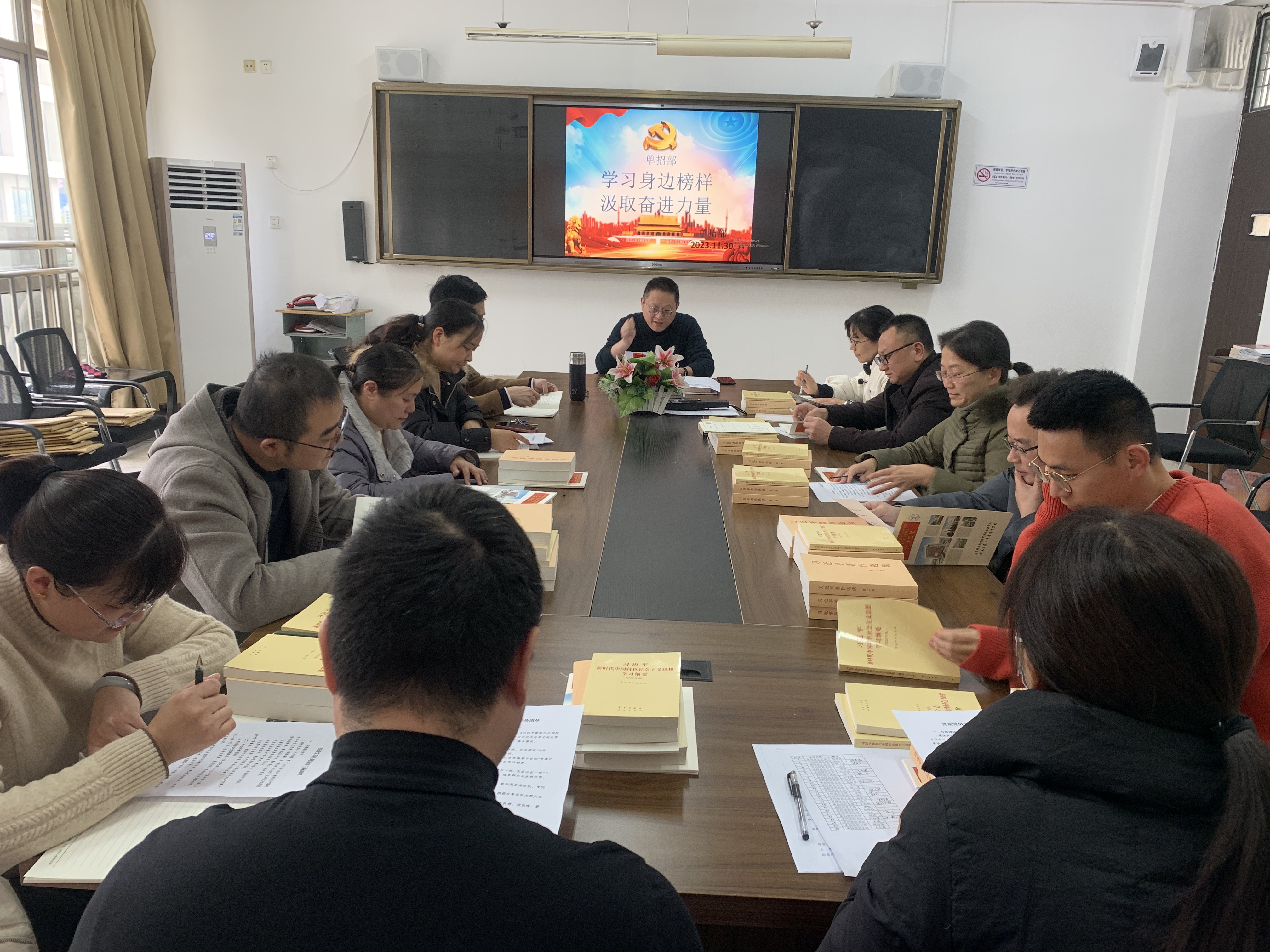 11月30日,单招部党支部以“学习身边榜样,汲取奋进力量”为主题,开展了11月份“固定+特色”主题党日活动。
