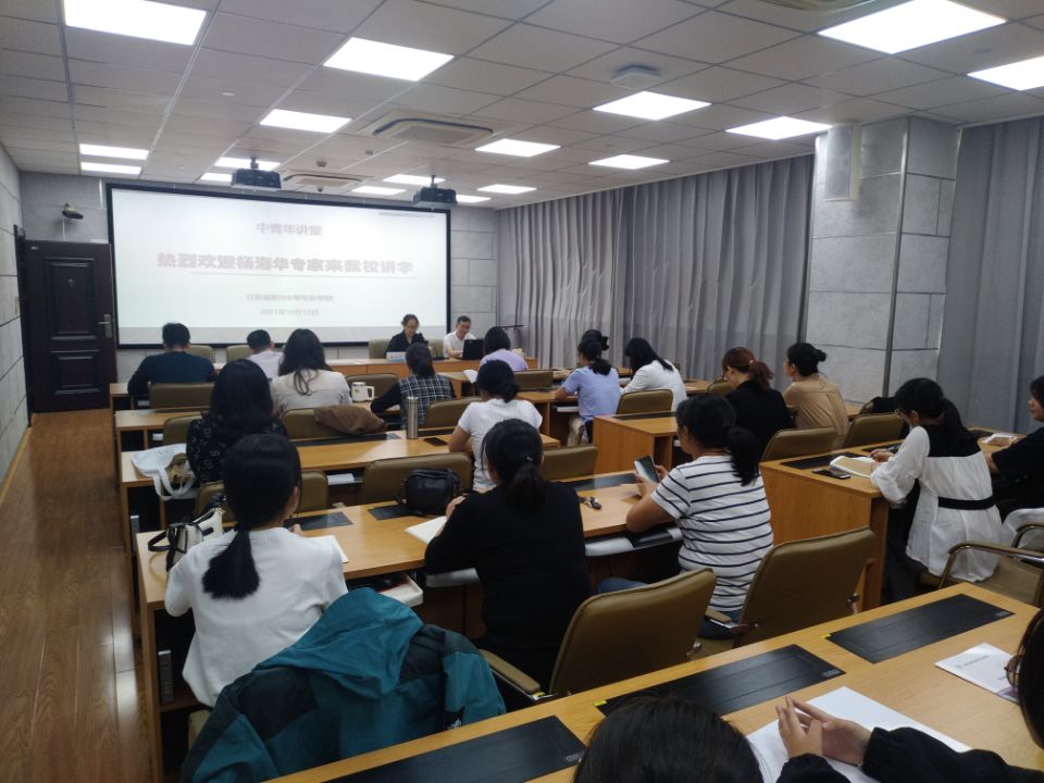 教科研是立校之本,是教师成长的必由之路。10月12日下午杨海华博士应邀来到我校英语沙龙,给全校英语老师开设讲座,杨海华博士是江苏理工学院职教学部副教授,硕士生导师。先后主持教育部人文社会科学研究青年基金项目、江苏省决策咨询研究基地课题、江苏高校哲学社会科学研究基金项目、江苏省十二五、十三五教育科学规划课题。先后在国内中文核心期刊和重点期刊公开发表学术论文近40篇,应邀开设各类讲座70余场。