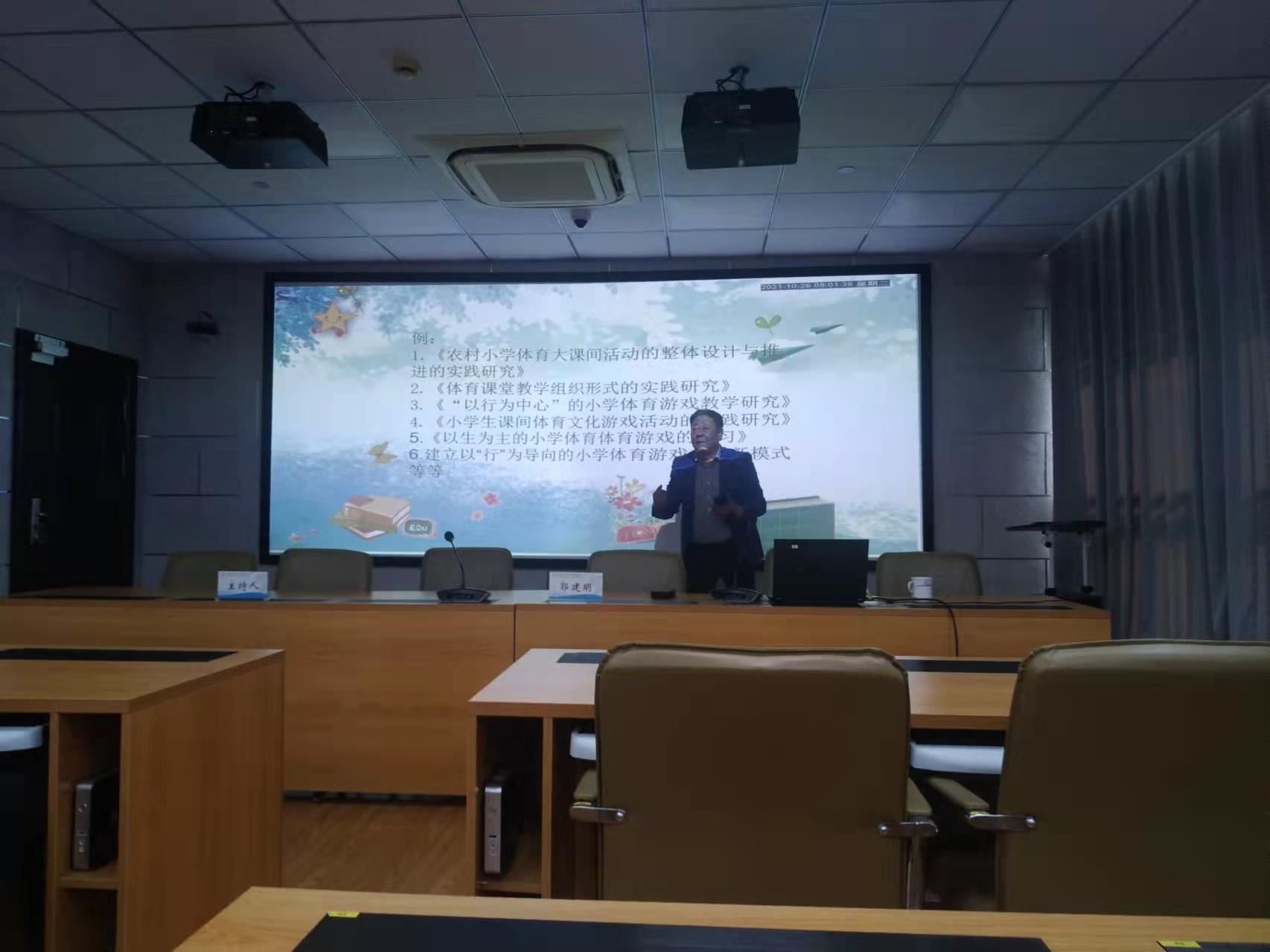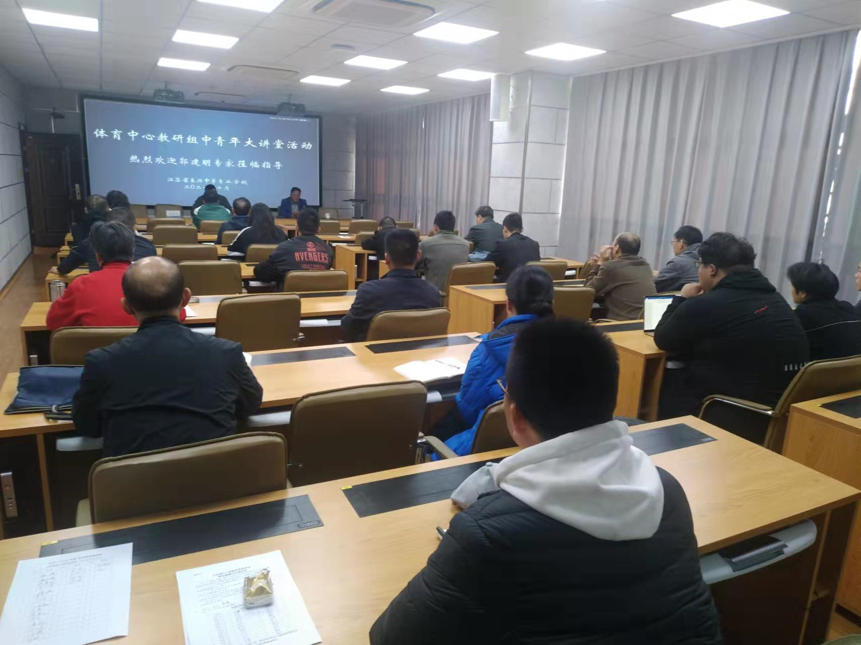10月30日上午,我校体育中心组课题研究专家讲座在11楼多功能云教室举行,泰兴市襟江小学教育集团特级教师郭建明主任应邀来我校作报告。