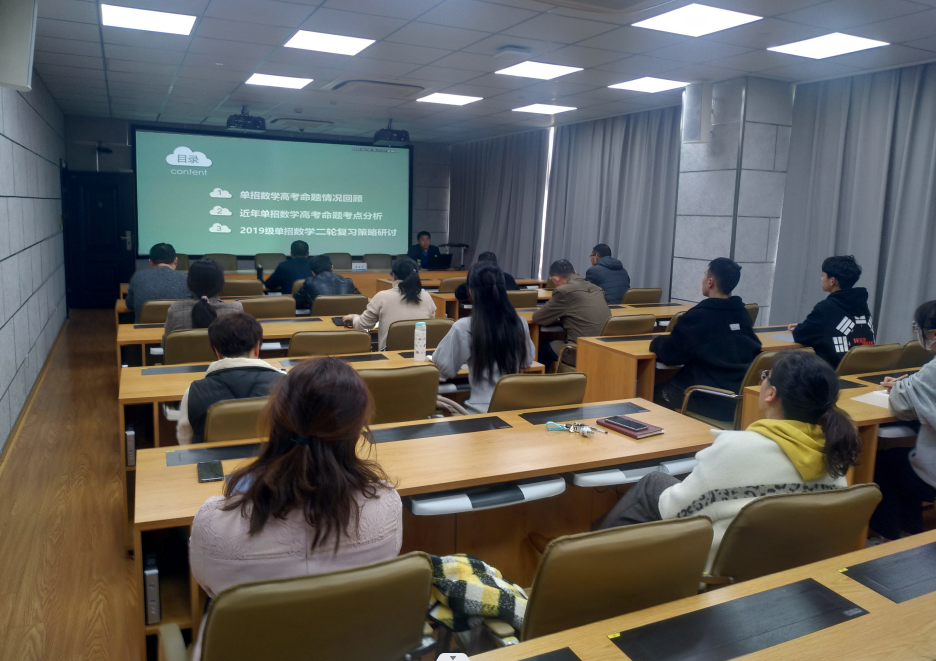一年一度的职教高考即将来临,数学科目是职教高考学子最关注科目之一。为使18级学子在冲刺阶段掌握数学科目科学的复习方法,从容应对职教高考,3月10日下午,单招部邀请有着丰富高考教学经验的数学权威专家、正高级李金龙教授对毕业班开展高考数学复习讲座,就数学复习策略进行了细致的专题讲解,以期更好地帮助我校考生积极应考、取得优异的成绩。
