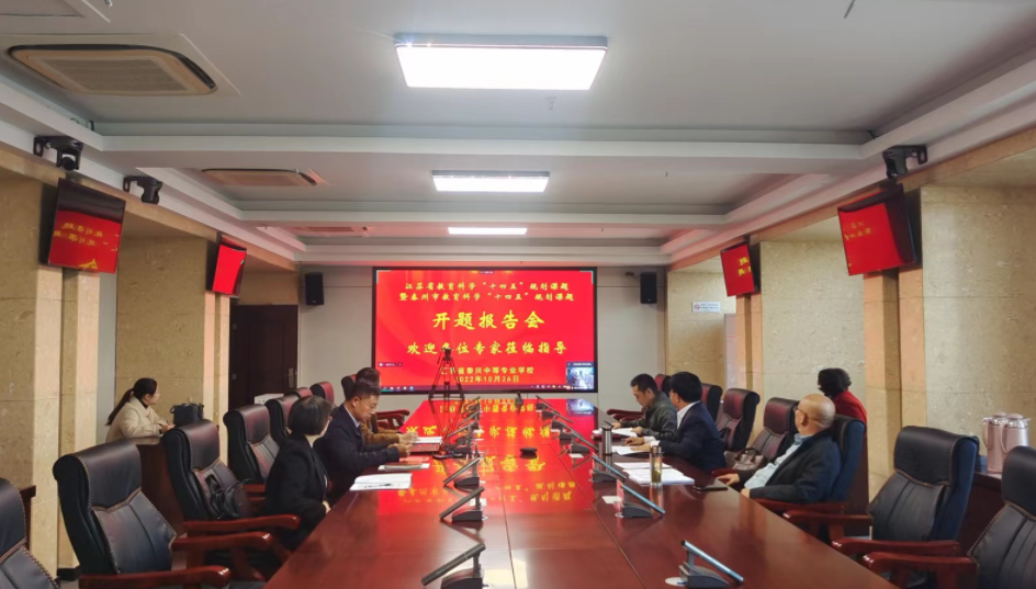 课题研究是教育科研的重要载体,是提高教师教育教学能力的有效途径,更是学校不断革新、积淀成果、提升品质的核心工作。为进一步把握课题研究方向,使课题研究落到实处,11月26日下午,江苏省教育科学“十四五”重点课题《人工智能助力课堂教学实践研究——以中职<机械基础>课堂教学为例》 暨泰州市教育科学“十四五”规划课题《两阶段六步骤教学模式提高学生职场涉外沟通能力》开题论证会在我校举行,学校副校长周勇致欢迎词,课题组全体老师参加。